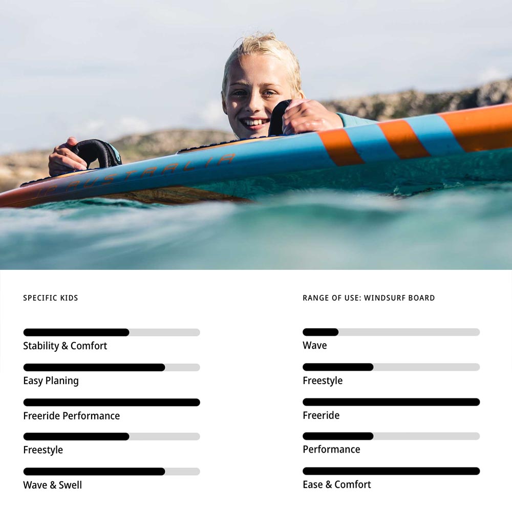 The board for kids who want to do what most windsurfers do: blasting back and forth at the utmost pace and throwing a carving turn now and then. The Magic Move does just that and the ‘90’ is the right size for ambitious kids.