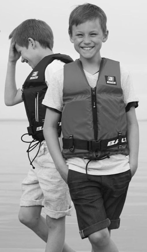 The life jacket Aqua is a classic sailing vest, for easier use in calm waters. Aqua has 50N in buoyancy and is thus classified as a buoyancy aid. The sailing vest is equipped with tie straps, waist straps with quick release buckles and elastic in the side sections. Crotch straps and whistles are available as options. The life jacket is available in the colors navy, UV yellow, red and blue and the size range is 30-90 + kg. The life jackets that have a carrying capacity of 50 Newtons, sometimes called sailing vests, have a slightly simpler design than life jackets. A 50N life jacket keeps you afloat by a good margin but lacks a collar to support your head. It has the buoyancy force more evenly distributed between the front and back and therefore does not guarantee to turn an unconscious person to a supine position. 50N life jacket is therefore recommended for swimmers who weigh at least 25kg.