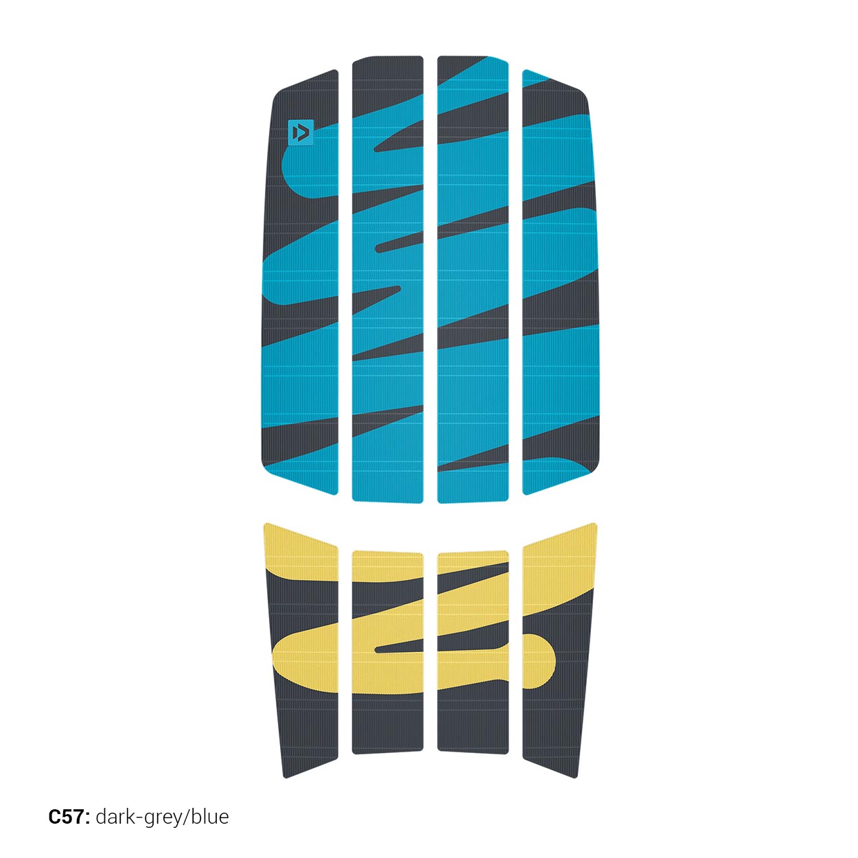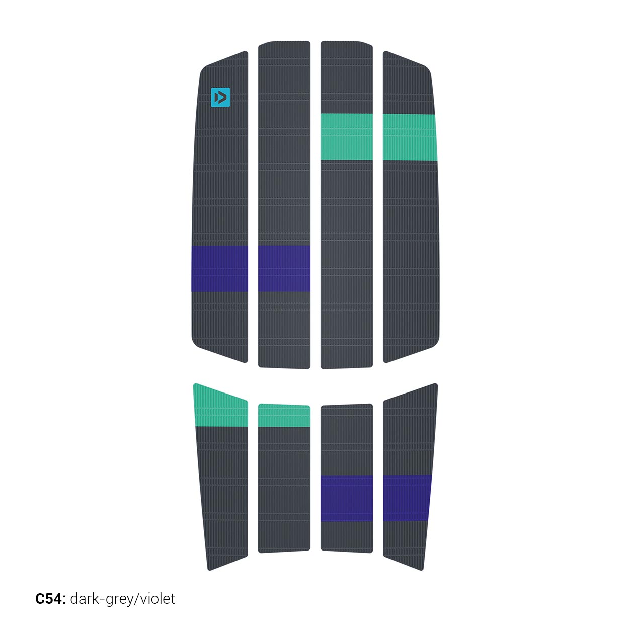 Maximum control and ultimate grip without any of the disadvantages which come with using wax. Using all 8 pcs, also the area between front and back pad is covered. DuotoneTraction Pad Team 3mm are designed for the pro series boards and do not have holes for adding straps to the board. The Duotone Traction Pad 3mm are designed for strapless riding from Duotone.