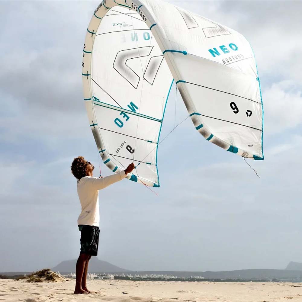 The Neo has been synonymous with wave-riding excellence from its inception. Now, in 2024, the Neo Concept Blue embodies our unwavering commitment to versatile, high-performance wave riding. This year's version introduces an enhanced wingtip shape and construction, improving the handling both on the wave and for strapless tricks. Moreover, the new kite incorporates the groundbreaking Concept Blue, utilising undyed fabrics to reduce water and chemical usage, a bio-based bladder, and recycled plastic components, further underlining our dedication to sustainability.