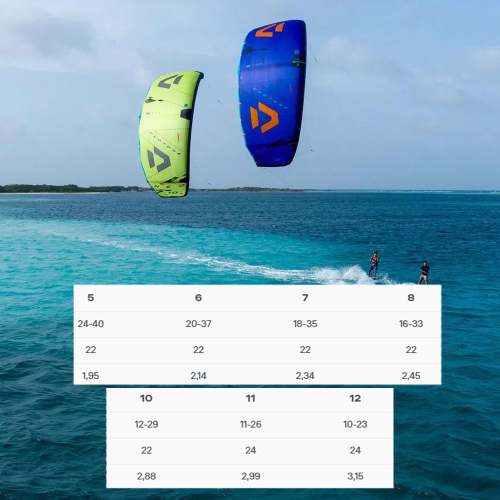 The huge high and low end guarantee a big wind range, making it possible to ride in the gustiest and often changing wind conditions without having to change the kite.