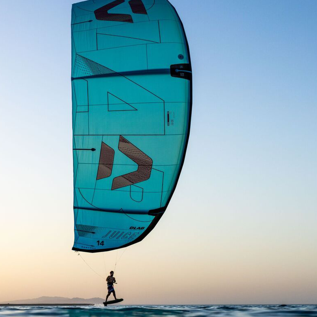 This kite is engineered for those who want to maximize their time on the water, offering an ultra-light and reactive feel that enhances responsiveness and agility. The Juice D/LAB ensures exceptional upwind performance, allowing you to carve against the wind effortlessly, making it an ideal choice for twintips and foils. One of the key advancements in the Juice D/LAB is its superior upwind performance and increased depower capability. The narrower leading edge reduces air resistance, enabling the kite to fly further forward in the wind window. This results in better upwind performance and more effective depower, giving you the confidence to navigate even marginal conditions. For precise control and improved riding feel, the new 6-point bridle system helps maintain the kite's shape and stability, especially great during light wind sessions with stronger gusts, resulting in controllable overpowered situations. This design enhances your overall riding experience by ensuring that the kite responds predictively, allowing for smoother transitions. The Juice D/LAB is designed for more agile response, faster turning, and easier relaunch capabilities. The lower aspect ratio contributes to better handling, enabling quicker turns with reduced bar pressure, while also facilitating reliable water relaunches when needed. Experience superior low-end power like never before. The Juice D/LAB redefines early planning in light winds, ensuring that no matter what board you’re on, you’ll be the first to get up and ride, leaving your peers far behind.