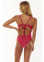 One piece, zero problems. The Solid Layton swimsuit stands out with its adjustable criss cross tie detail on the back.