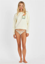 Snuggle up in this cozy fleece crew with artwork on the left chest and a fun screenprint on the back.