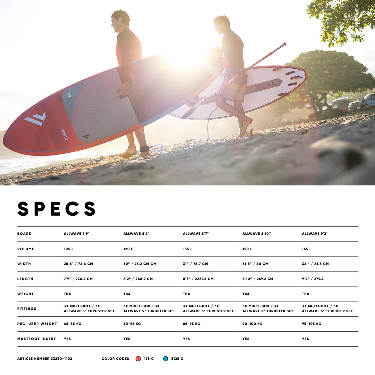 The 2023 AllWave comes in a completely new shape. It´s super easy to paddle and catches wave after wave, whether it’s clean overhead walls, or small and choppy. Between the 5 sizes 7´9” / 8´2” / 8´7” / 8´10” and 9´2” everyone will find the right model for their skills and body weight. The two new smaller sizes 7'9“ and 8'2“ are the perfect choice for more experienced riders who want to go out in moderate conditions.