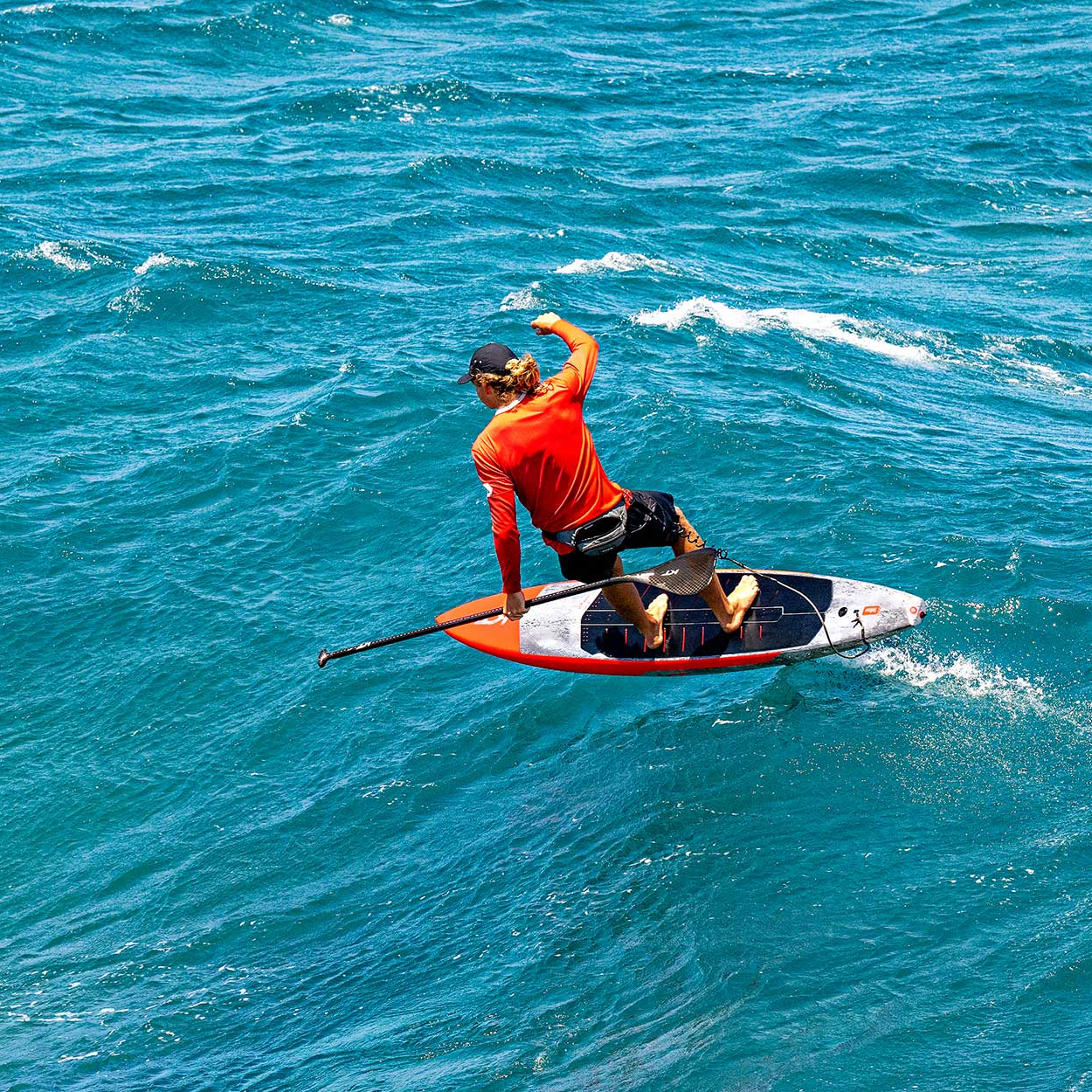 While finding your balance takes slightly more skill to master, the rewards in speed and efficiency make it the ultimate choice for open water enthusiasts who want to ride smaller, faster foils and in longer period swells.