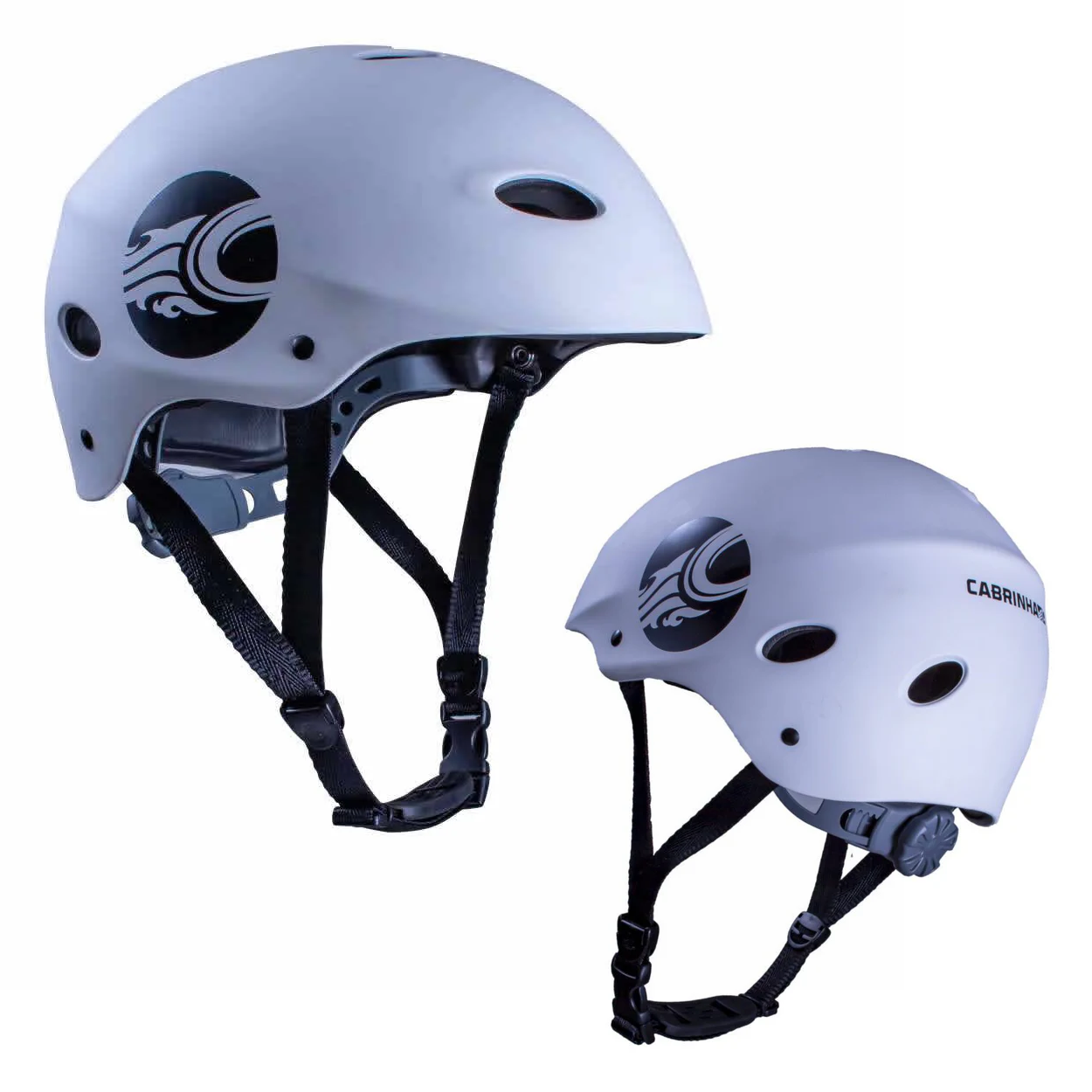 The Cabrinha helmet is CE approved to EN 1385 standards, ensuring it meets rigorous safety requirements. Its ultra-light, non-water absorbent construction provides comfort without compromising on durability. The helmet features an impact-resistant ABS outer shell, complemented by a soft EVA lining that absorbs impacts effectively. Designed for optimal ventilation, the air-vent system promotes airflow, keeping the wearer cool during use. Additionally, the helmet includes easy-adjust chin straps and a twist tightening system for a secure and customizable fit. For added protection, it also has removable EVA ear protectors, enhancing safety for various water sports activities.