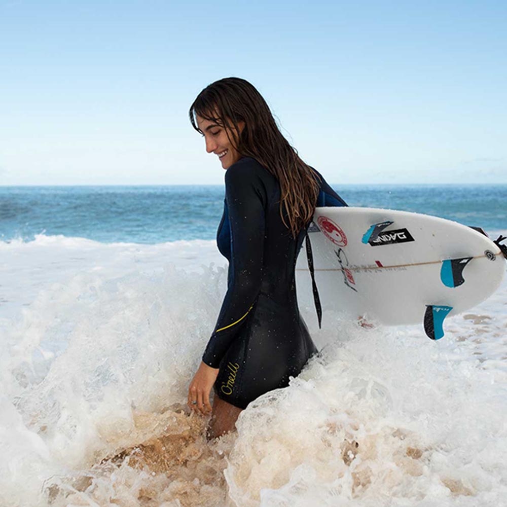View the size chart below to find your ideal women’s wetsuit. If your measurements border on the top end of your chosen size, go for the next size up.