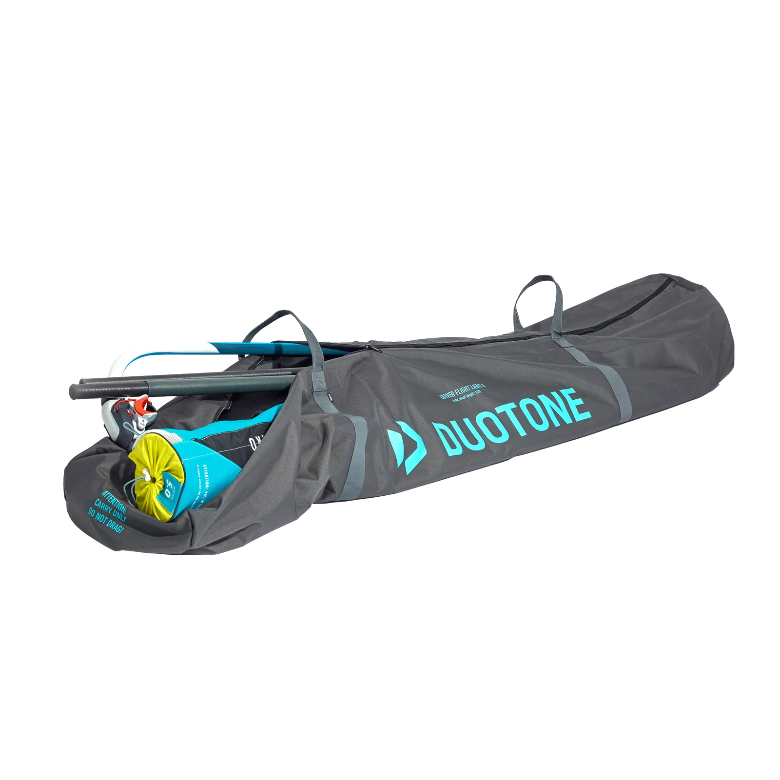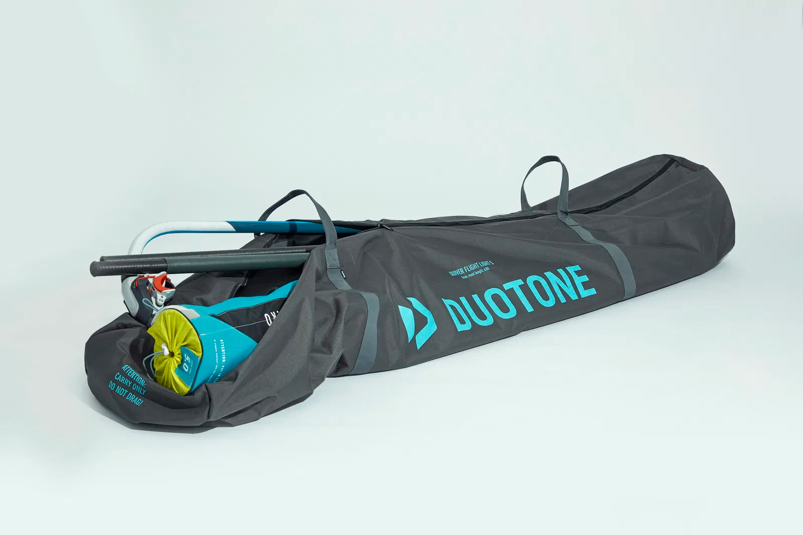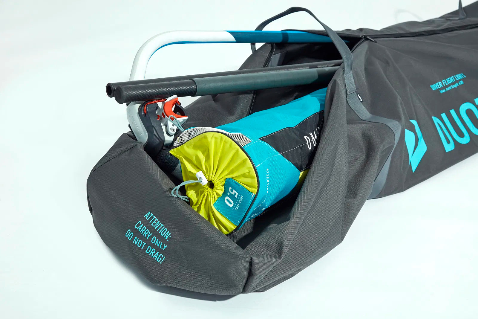 Super-lightweight, simple tote bag with sewn-in handles (approx. 70% = 3 kg lighter than standard quiver bags) in order to remain within weight restrictions, e.g. on planes. Holds up to three rigs and is available in two sizes: - S: max. mast length 430 (approx. 1.6 kg) - L: max. mast length 490 (approx.1.8 kg) Unique: the empty bag can be “stuffed” together reducing storage volume to the max.