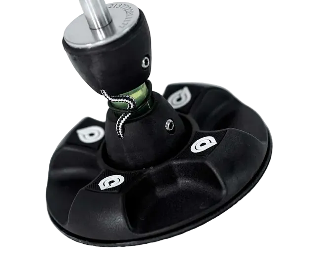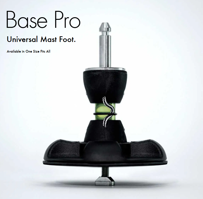 The Goya Base is a One Size Fits All system using a urethane tendon. It screws into any standard fin-box type mast-track. Used by most professional sailors this base attaches all your Goya boards to all your Goya rigs. The release system is Universal Pin. Its low height and wide base plate distribute the forces of the sail evenly onto the board deck, while a padded layer absorbs shocks and protects the deck of your board.