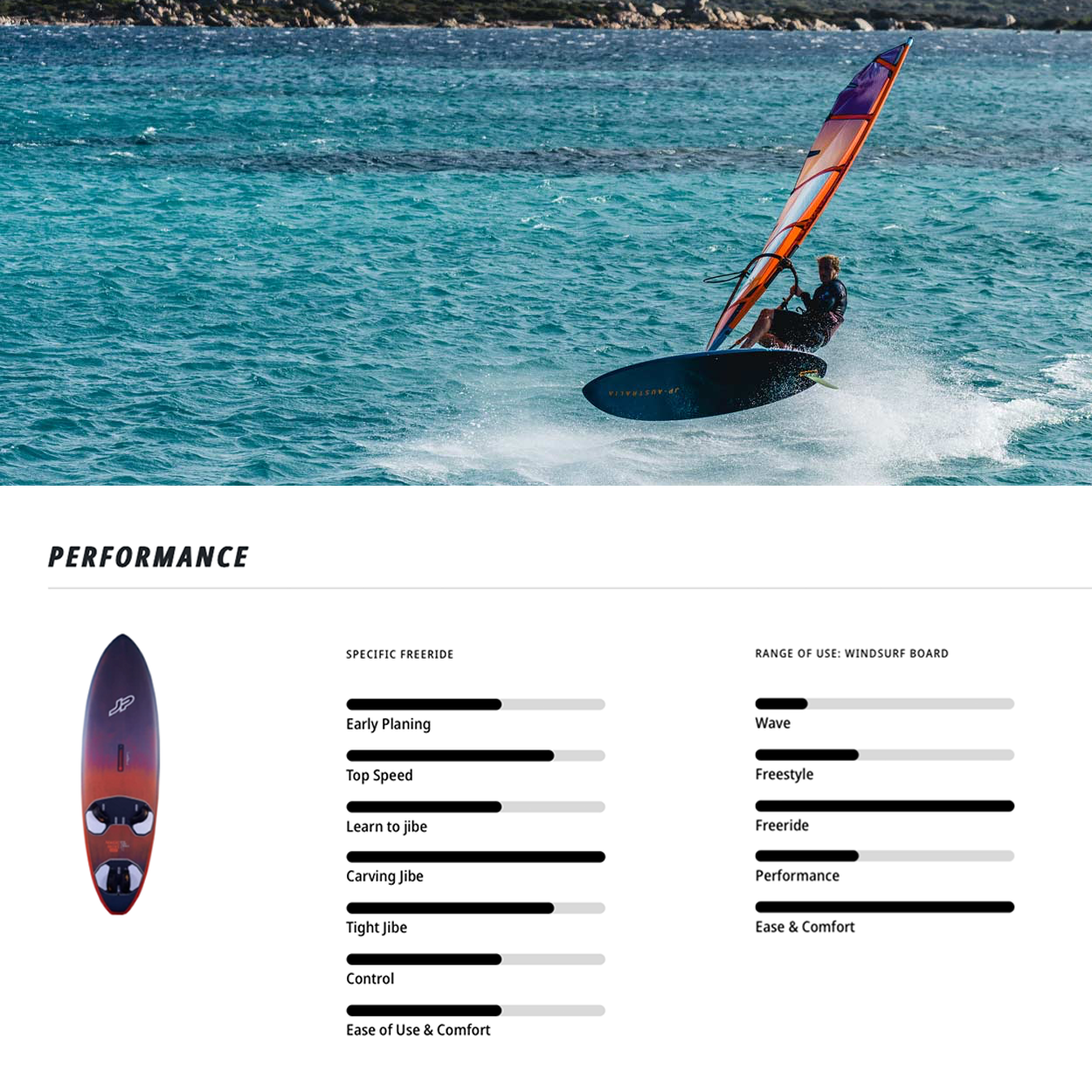 The Magic Move supports riders when it matters: Thanks to its wider tail, it planes earlier and easier than the Freestyle Wave. It stays on the plane when the wind is fluky and takes more speed through planing manoeuvres. And it is clearly more manoeuvrable and feels more at home in swell than previous small JP freeride designs.