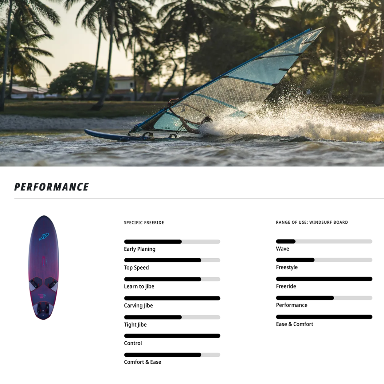 Narrowest JP freeride hull for comfort, smoothness and fast carving jibes