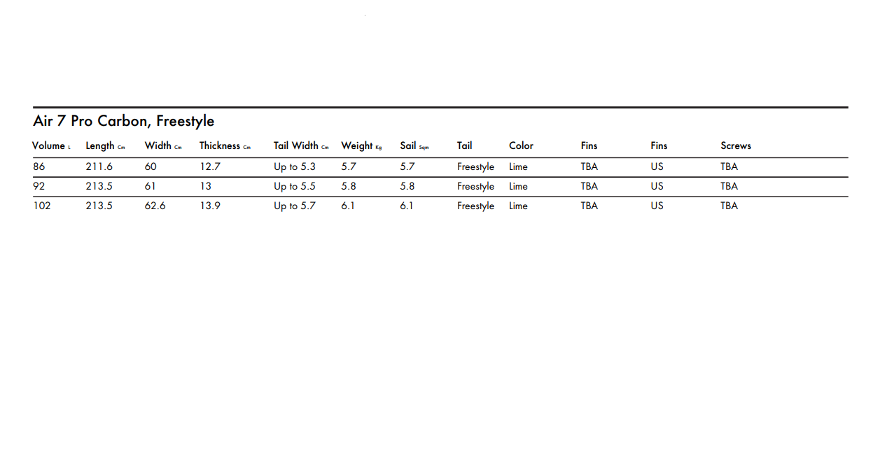 The new Air isn’t just updated, it’s rebuilt and reborn. Fast and powerful Freestyle, super lightweight, increased water flow, and a more powerful and comfortable shape. Generation 7 is a shorter, turnier board with higher velocity. The Goya Air 7 Pro Windsurf Board is Available in 86, 92, and 102 liters and comes in the below construction,