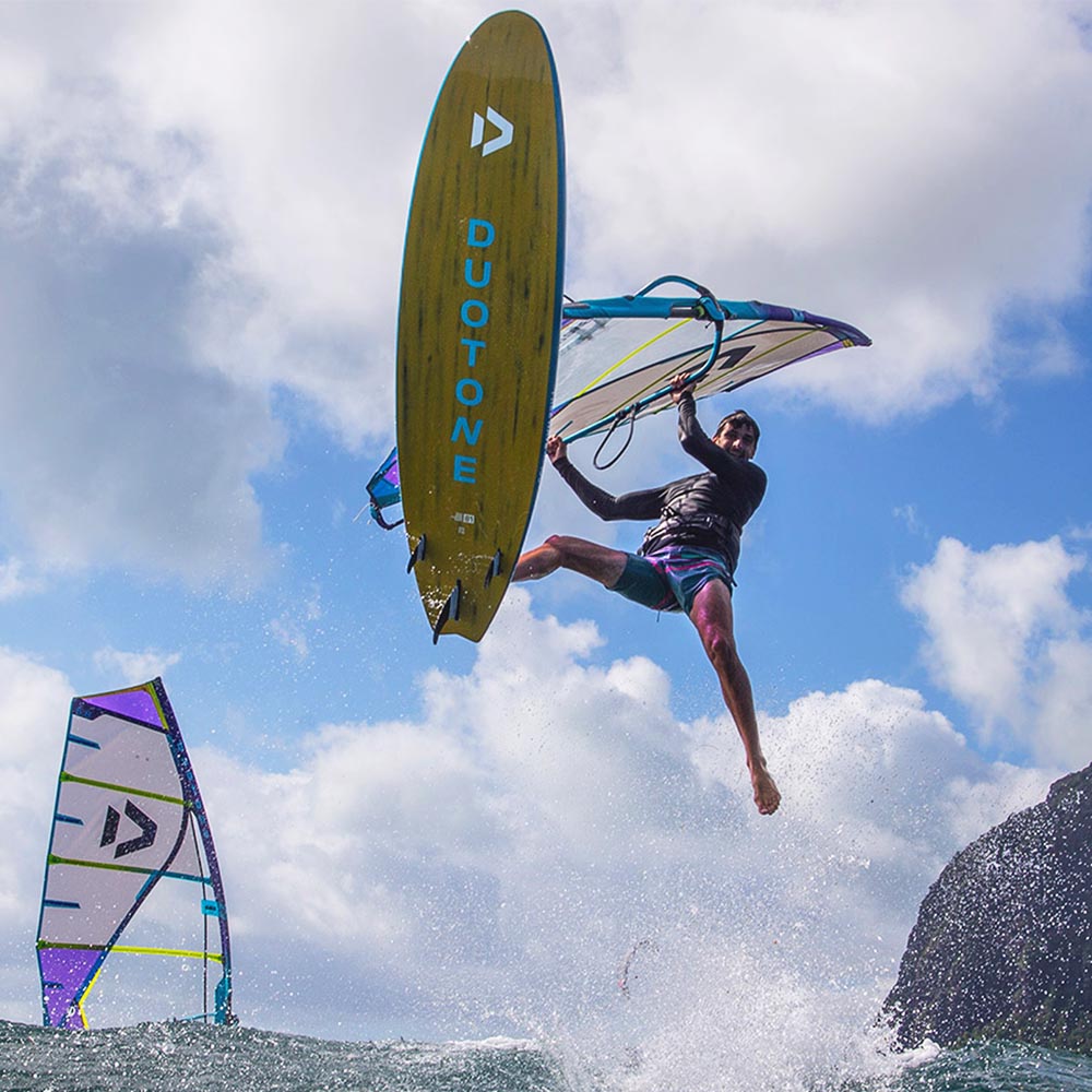 As one of the H2O riders I have really enjoyed the variety of kit H2O have available. Including the Duotone sky surf 35Ltr which quickly become my favourite board because of its shorter and thicker shape while being low in litres it still allows me to get it out the water in some lighter winds. However it comes into its own when the wind is strong and the waves are pumping with its incredible manoeuvrability. Paired with the Duotone units (that are light weight and precisely balanced) wave riding is a dream.