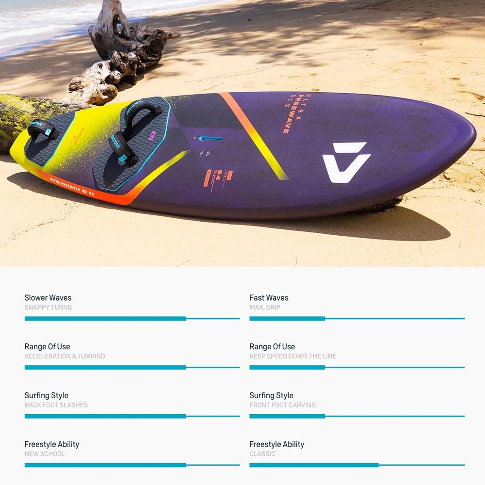 With the brand-new ultra freewave our major aim was to get away from the typical does it all compromise board. That's why we didn't go the usual route of creating an "easy going" freemove board and then trying to implement as much classic wave and freestyle skills into the shape. Instead, we went the other way around.