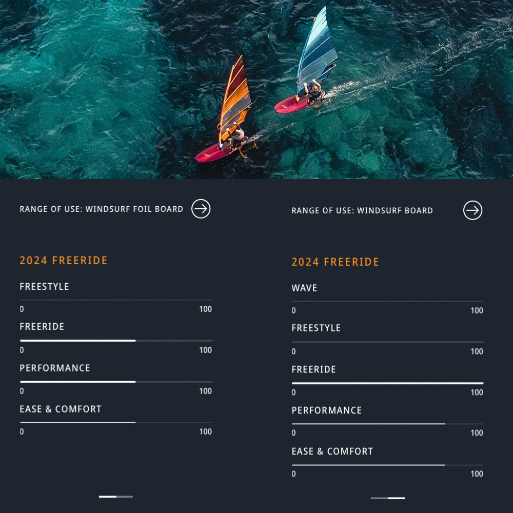 For speed-oriented freeriders who enjoy sailing with power and keeping the board flying on its fin