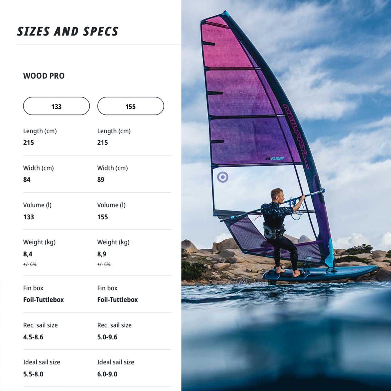 The 133 and 155 represent JP’s most balanced mix of user-friendliness combined with top foil performance. They are very efficient and fast, super comfortable to ride and easy to handle.