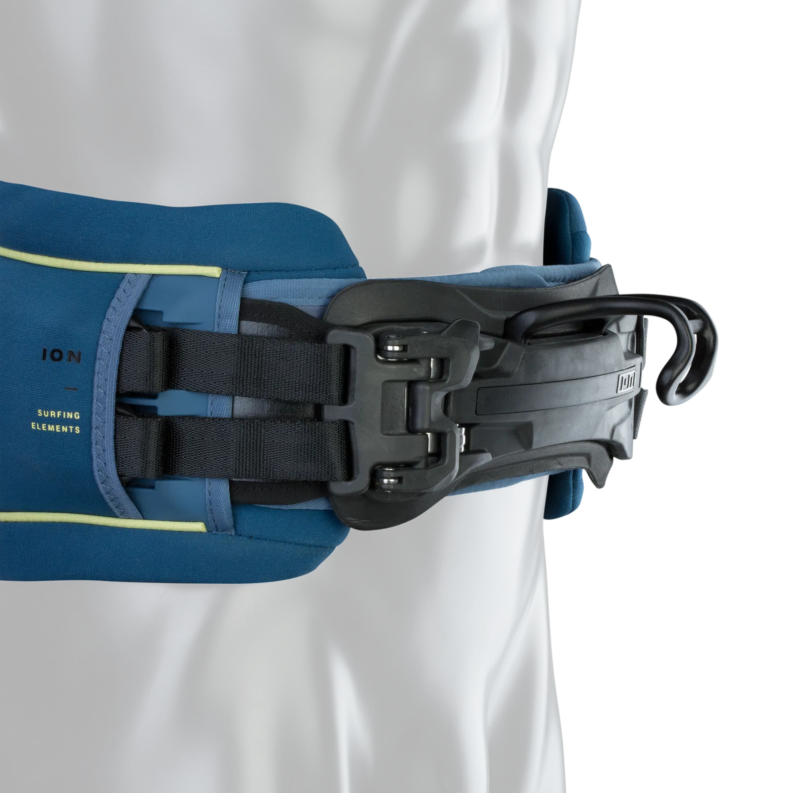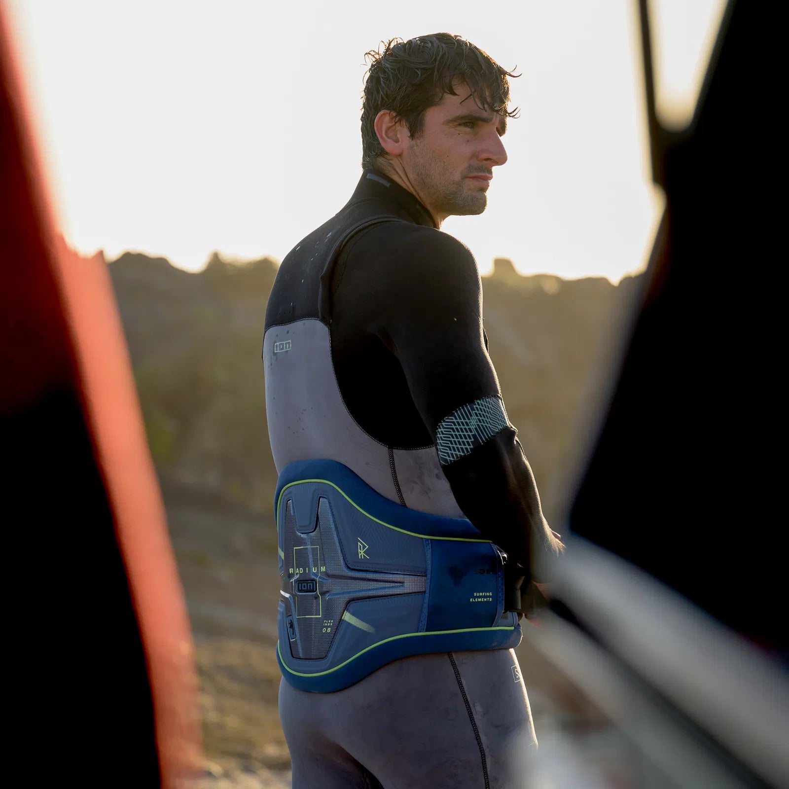 The latest addition to ION's Ergo_Concept, the Radium is the perfect harness for every windsurfer who's looking for flexibility combined with good back support.With a flex index of 8, it belongs to the medium rigid harnesses. Flexible side parts and an internal flex belt allow for good mobility. With a flex index of 8, it belongs to the medium soft harnesses. Developed with the rider's health in mind, the Radium features an exchangeable Ergo_Pad on the inside. The pad is characterized by its integrated channel, different thicknesses and elevated trigger points on the outside. These prevent lower back injuries, reduce pain and increase comfort. Both pads are included and attached with a very robust velcro. Just try both and go with the one you feel more comfortable with. The 3D_Plus spine reinforces back support. The result is a sound balance between freedom of movement and support through a high outline. The harness comes with a lightweight thanks to the partly Curv construction, non-water absorbent HD_Foam, and the sleek Spectre Bar (windsurf hook included). The Curv_Flaps of the Spectre bar create a seamless and optimal force distribution throughout the harness.