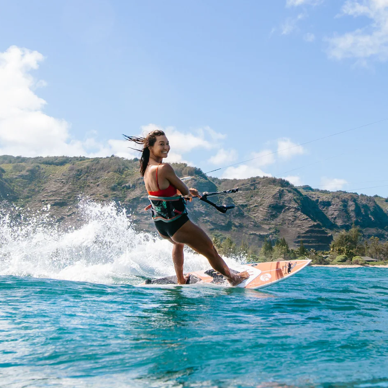 Wahine is a waist harness that features a new, women-specific, slim profile fit, for a snug and secure fit. High-rebound memory foam pillows are strategically located for comfort, while the back panel features a silicone print pattern to keep the harness in place, whether over a shirt or wetsuit or against bare skin. A Curv composite flex shell is ergonomically designed to fit the natural curve of your back, for firm support with just the right amount of flex. The push button dual sport spreader bar with Option spreader bar compatibility makes the Wahine a super-versatile women's waist harness.