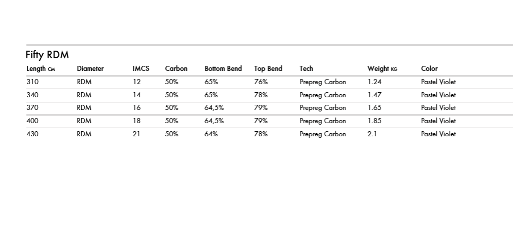 Available in RDM 340, 370, 400, and 430 centimeters..
