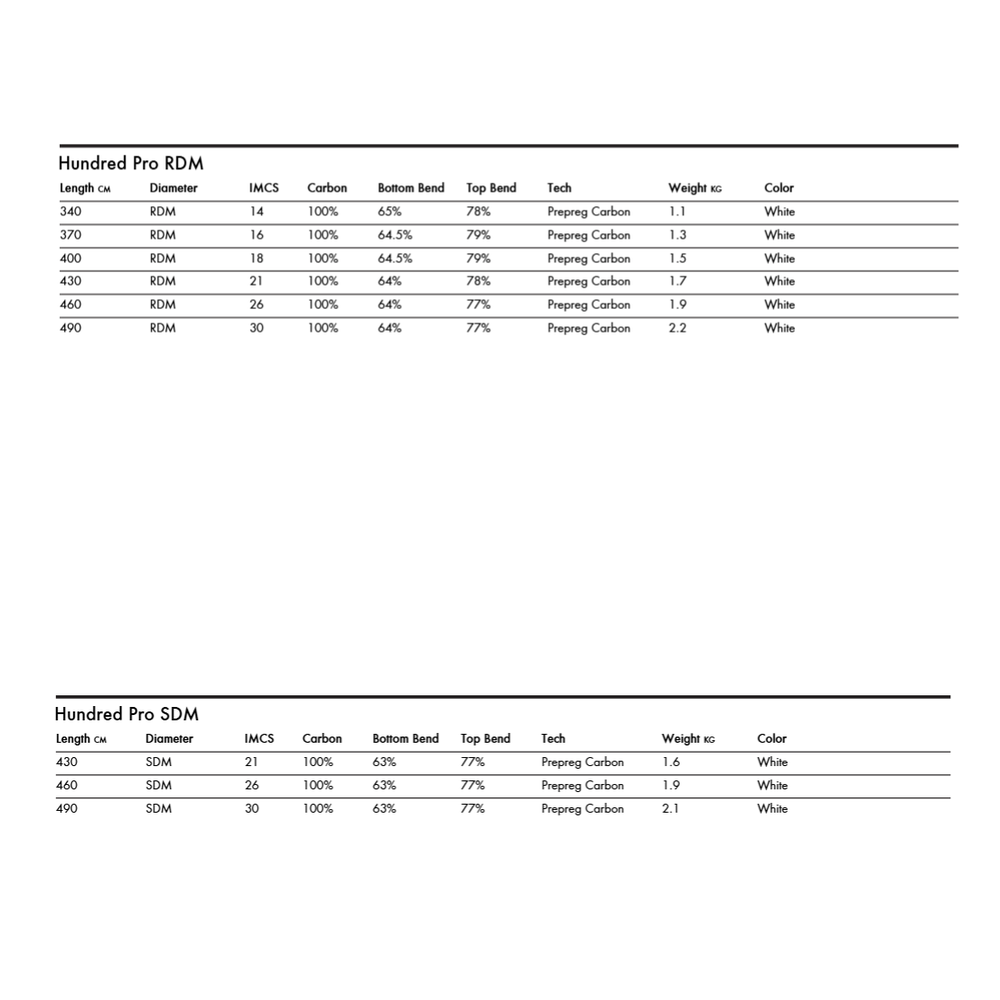 The Goya Hundred Pro Windsurf mast comes in both RDM and SDM models... The all-new Hundred Pro is our pride and joy—a full carbon mast that elevates any rig, across any discipline. Years of development went into this mast to deliver unmatched performance, responsiveness, and stability.