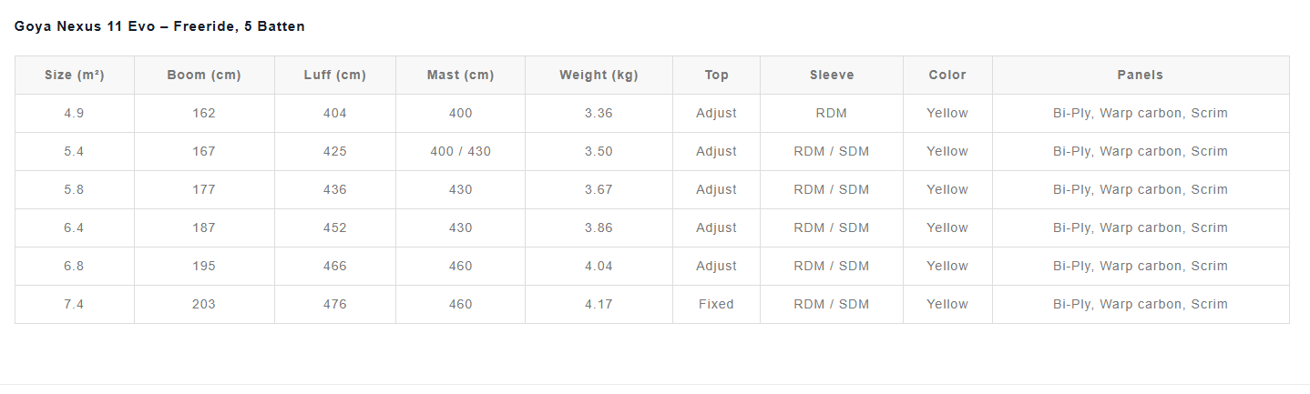 Goya Nexus 11 Freeride Windsurf Sail Available in 4.9, 5.4, 5.8, 6.4, 6.8, 7.4 square meters.
