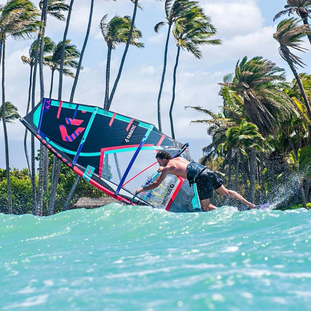 All sizes are sensationally lightweight because the innovative and high-tech laminate ODL and the 100-micron ULTRA FILM were used instead of the usual XPLY material. These materials are 50% lighter than previous sailcloths, which makes the IDOL LTD weigh about as much as a 1.5 m² smaller SUPER HERO (e.g. 4.8 and 3.4). The IDOL LTD can do everything a freestyler needs it to. In addition to its absolutely neutral handling, it gives no unwanted feedback and is incredibly lightweight in your hands, leaving you free to concentrate fully on your moves and manoeuvres. You’d think you were turning without your sail, since the IDOL LTD rotates incredibly fast through all tricks and is completely balanced in the wind during ducking moves. The extremely high clew and the short boom length make ducking manoeuvres so fast that almost no speed is lost. Not only will the IDOL LTD boost your success rate for difficult manoeuvres, it will also make it a lot more fun to meet new challenges. New, virtually unbreakable battens are used, which can easily handle even the roughest wipe outs. Simply awesome: When used for foiling the IDOL LTD features a special clew eyelet to be able to position the sail even more upright! Important: Although this is something other manufacturers are reluctant to mention, achieving the lowest weight can only be achieved by reducing the thickness of materials. Because the thickness of the ODL yacht laminate was kept to a minimum, the material’s UV stability is limited.