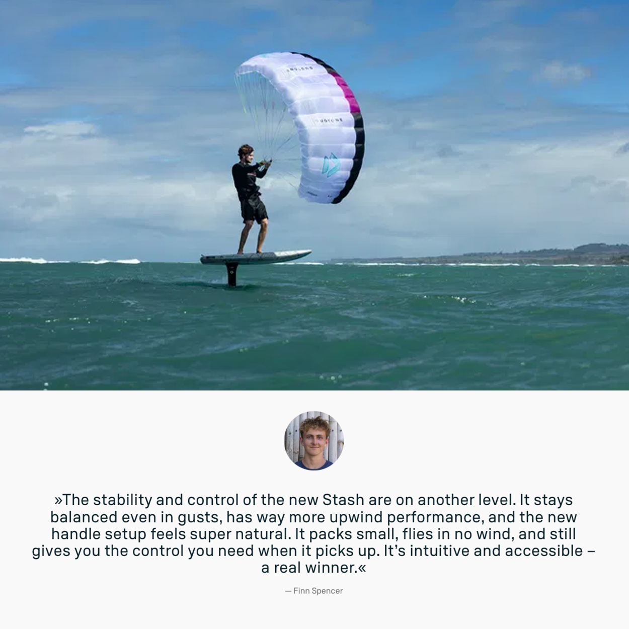 Secondly by our newly developed ergonomic handle, allowing to slide the front hand under the A-lines, offering highly improved riding comfort and power distribution. All line-connections are fully integrated into the handle – including a harness line option. This makes the new Stash incredibly comfortable to ride and offers a clean and sleek solution for tangle-free stashing and easy re-deployment.