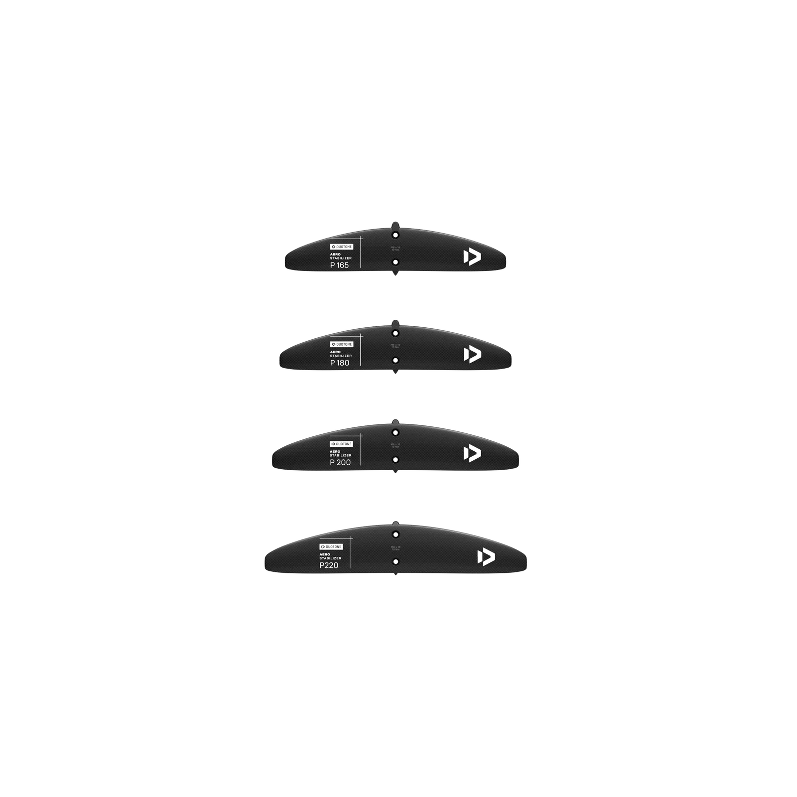 The P Stabilizers are available in four sizes, 165/180/200/220. Each of them slightly tweaked to work perfectly with our new front wings. These new stabs are almost completely flat and have lost the little winglets which can be found on our other range: the C Stabilisers. By making these changes we were able to loosen the feel in the turns, which gives an exciting flavour to our new front wings.