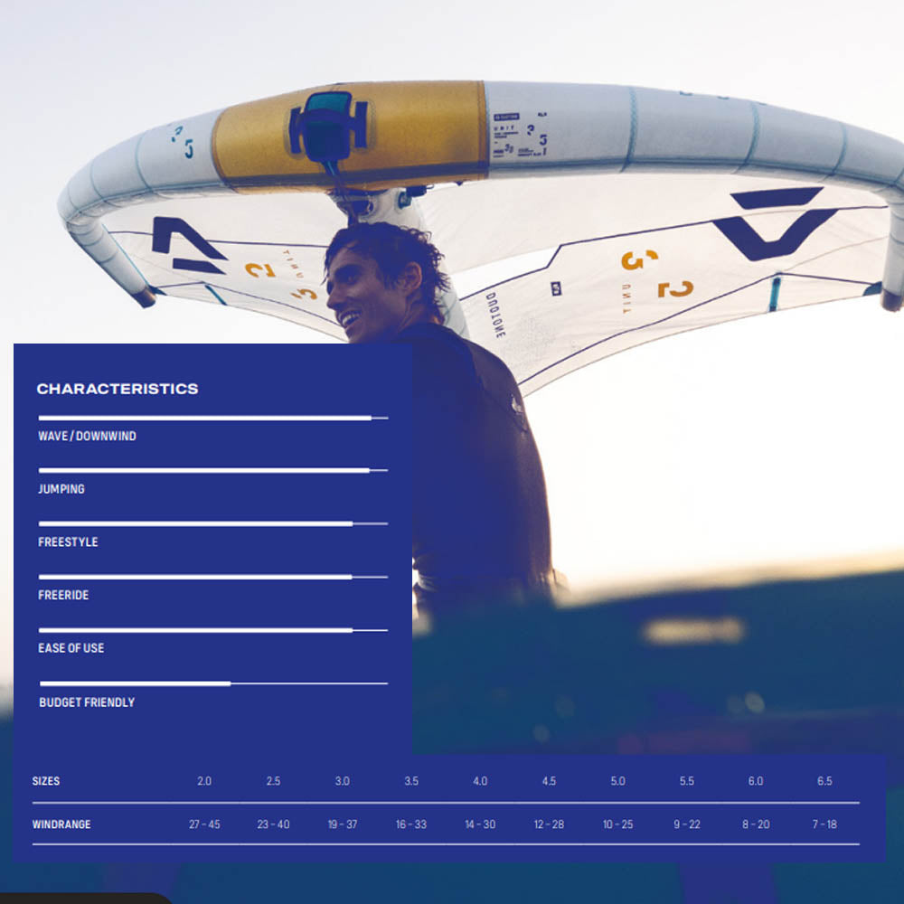 I usually go for the DLAB or SLS Concept Blue Units but this wing has had great reviews so thought I'd give it a try. Great power delivery and handling, really light weight but solid construction. The wing’s dihedral and tension profile give amazing flight balance so although designed for wave/downwind, I think this wind would suit all levels. Bought teh 5m for the summer but bought a 4 ready for the winter swell.