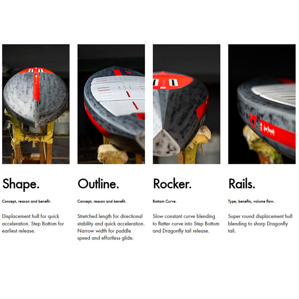 Outline. Concept, reason and benefit. Stretched length for directional stability and quick acceleration. Narrow width for paddle speed and effortless glide.