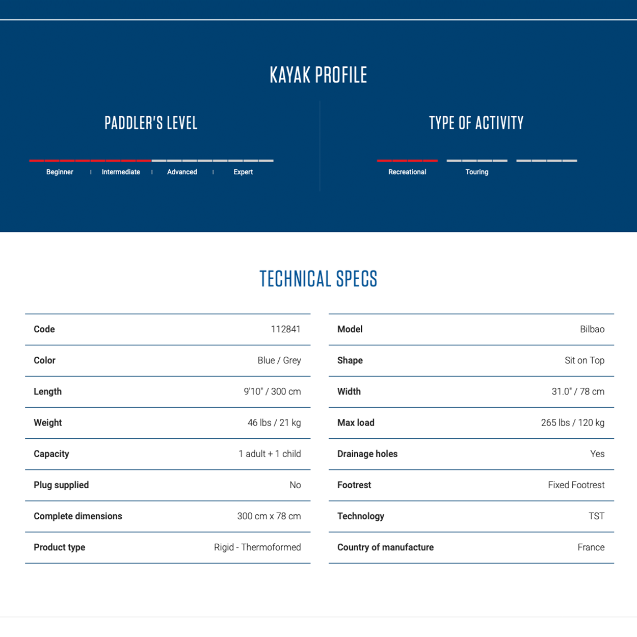 The TAHE Bilbao is a versatile single person kayak that suits beginner and experienced kayakers alike. Whether you are paddling for sport, exploring, or having a quick paddle with the kids, the quality of its design makes all activities possible with comfort and ease.