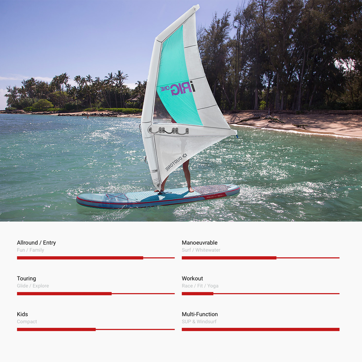 Offering the same great qualities as its composite sibling – stable, great non-planing tracking and glide, excellent turning potential and all-round manoeuvrability – learning stand up paddleboarding or windsurfing couldn’t be easier. The soft deck pad and inflatable construction makes the viper air SLT forgiving and offers unlimited fun, whether windsurfing, suping, catching small waves or just floating in the sun. Storage and transporting are easy in either construction options, with the whole package conveniently fitting into a backpack ready for the next session.