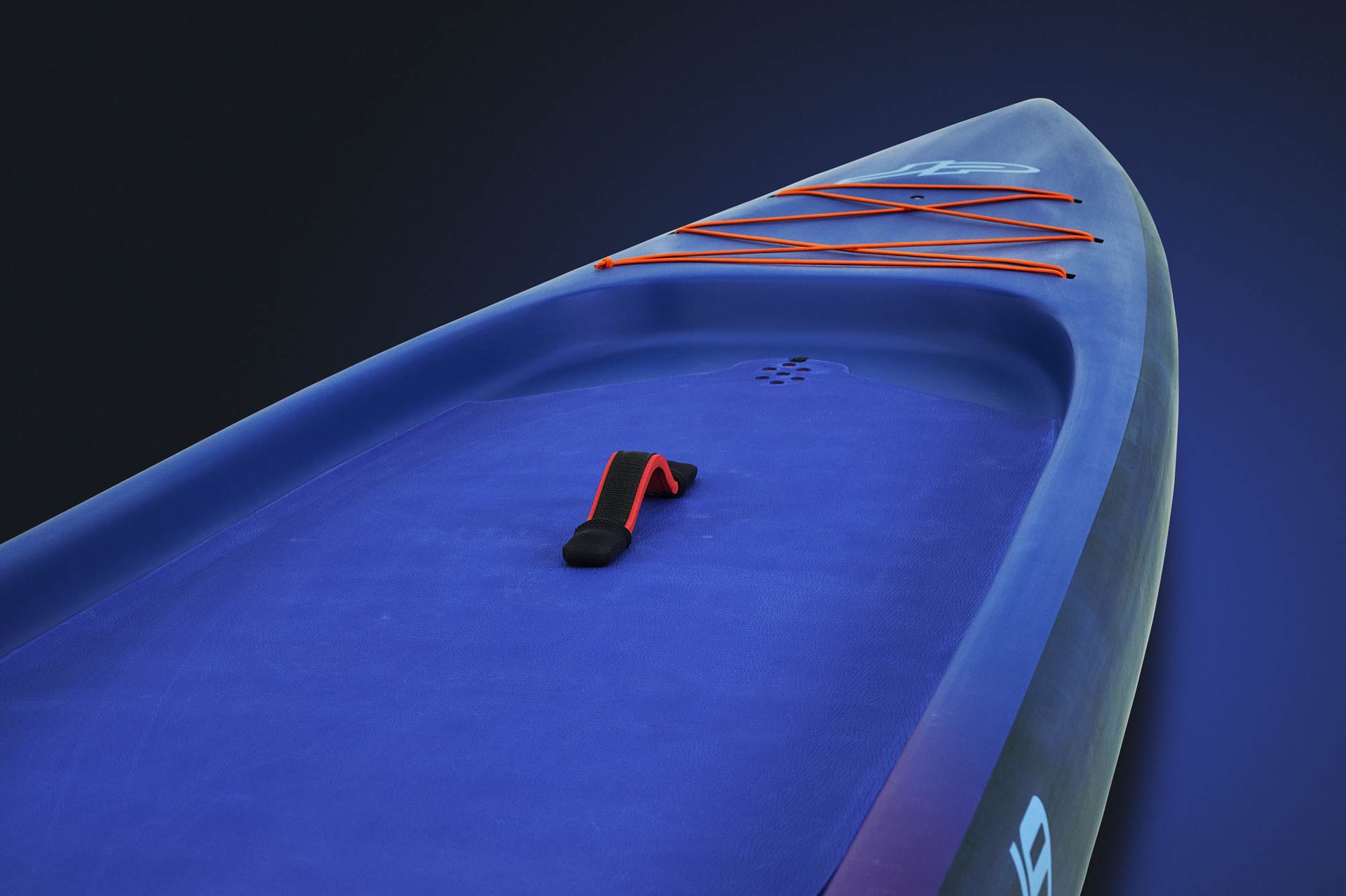 Safety: Use a leash for a secure connection to the board. Leash plugs are placed next to the standing area - usually behind the deck pad on the tail.