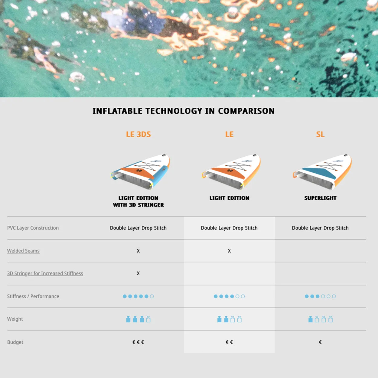 It comes in 4 different technologies: Superior Edition with 3D Stringer, Light Edition with 3D Stringer, Light Edition and Superlight.