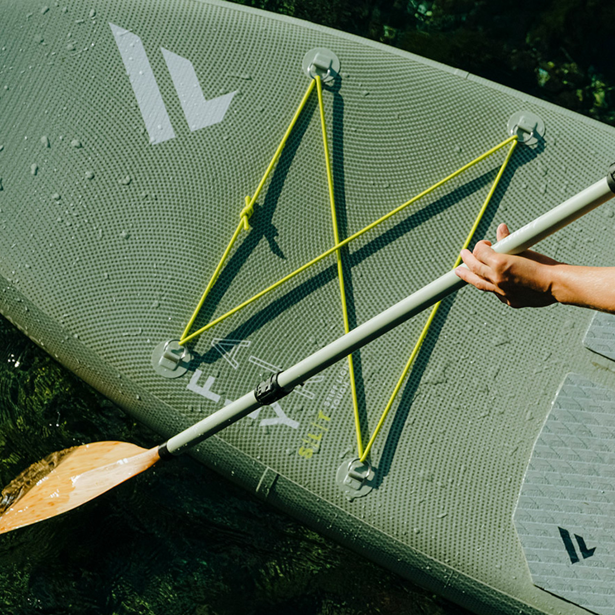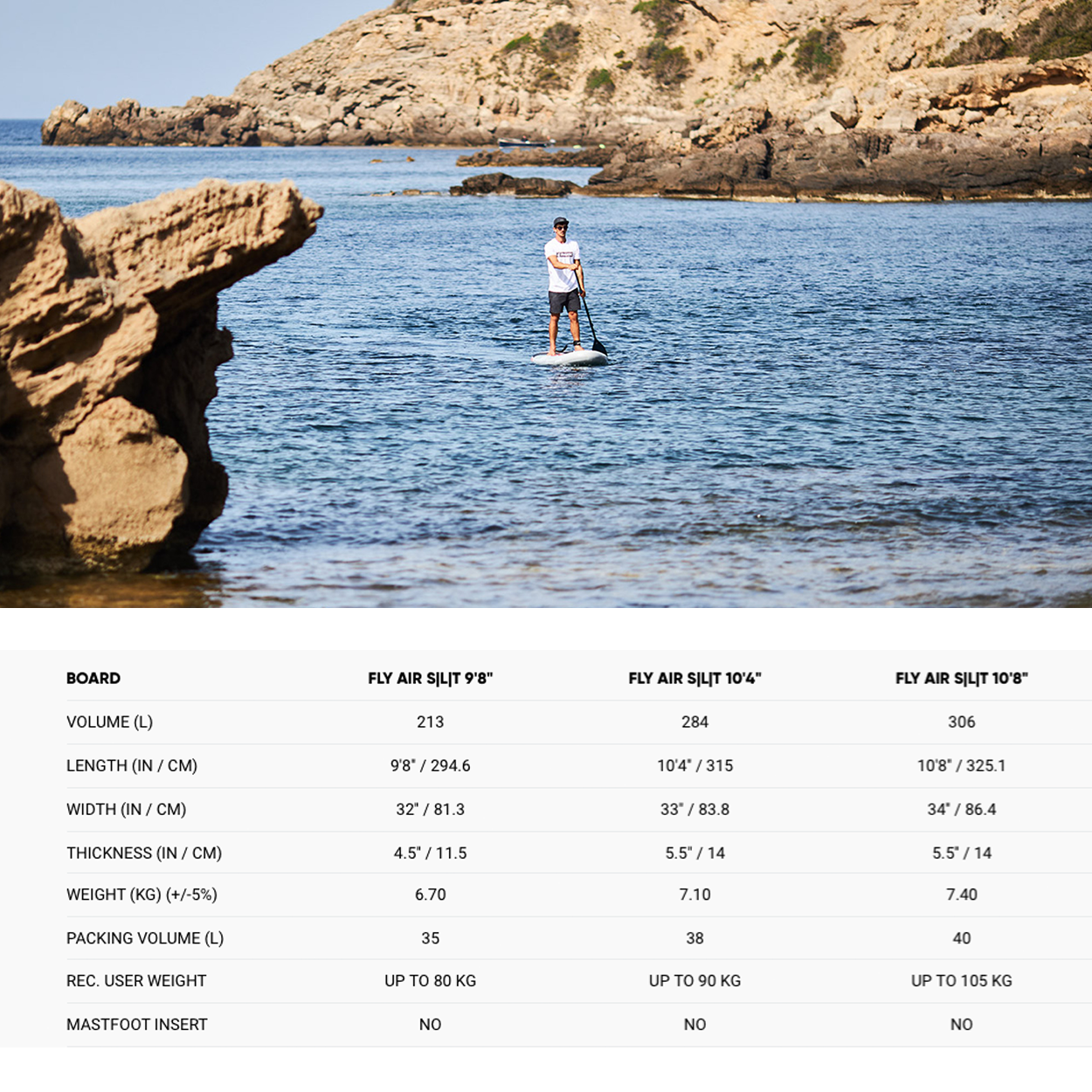 The fly air S | L | T is the all-around inflatable sup that everyone can enjoy. Our easy and stable all-rounder is the perfect solution if you are looking for a classic board that can perform in everything from flatwater to small waves. Highly portable, strong, stiff and durable, the fly air S | L | T is the convenient answer to limited storage, city life and travellers’ demands. With a great mix of glide, stability and all terrain versatility, the all-around outline and generous volume cater for those looking for an easy ride; while the side fins give great bite when riding small waves.