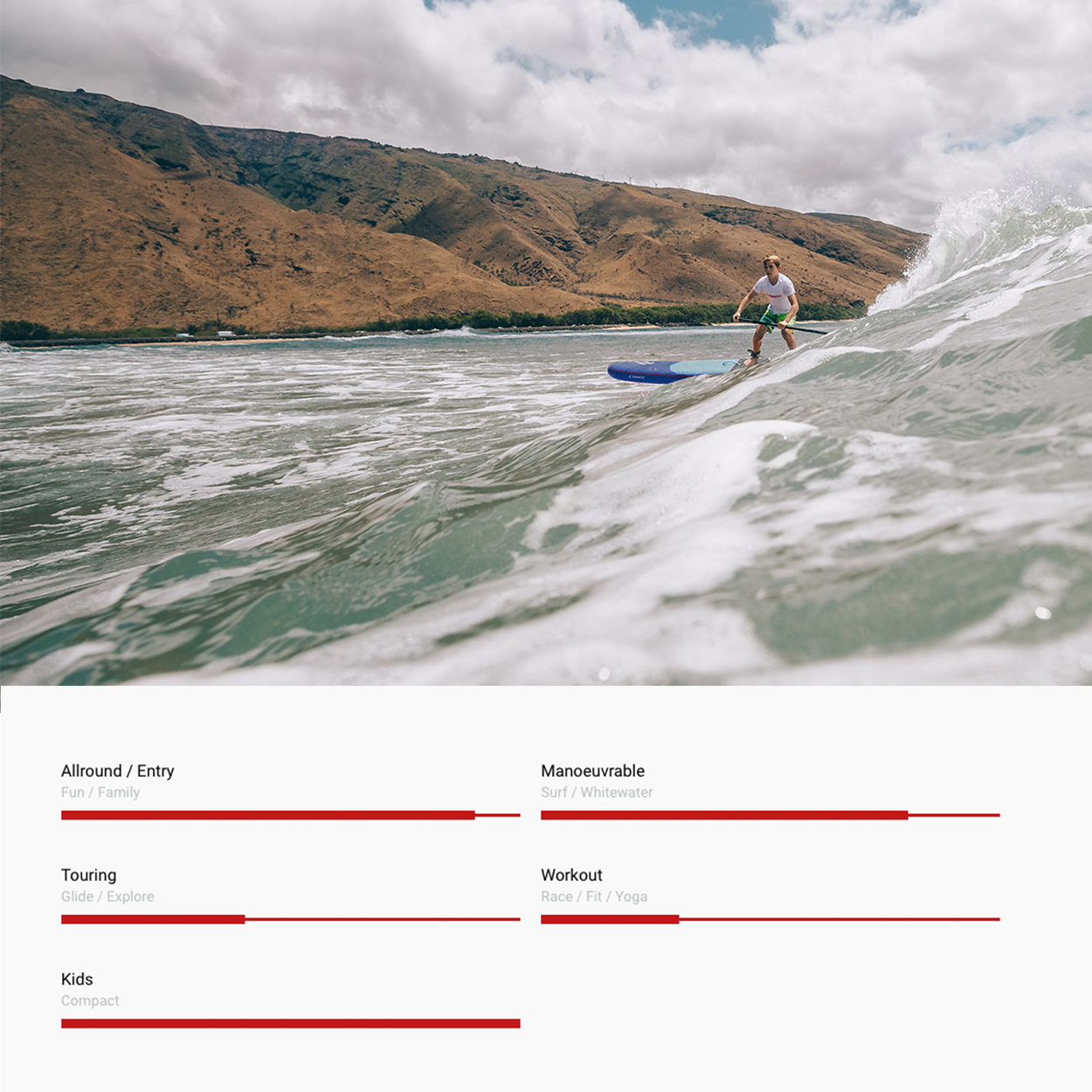Stiff | Light | ToughOur industry-leading woven drop-stitch material make our boards 20 % lighter and 40% more compact to roll! Machine-welded rail-bands guarantee maximum durability and longevity.