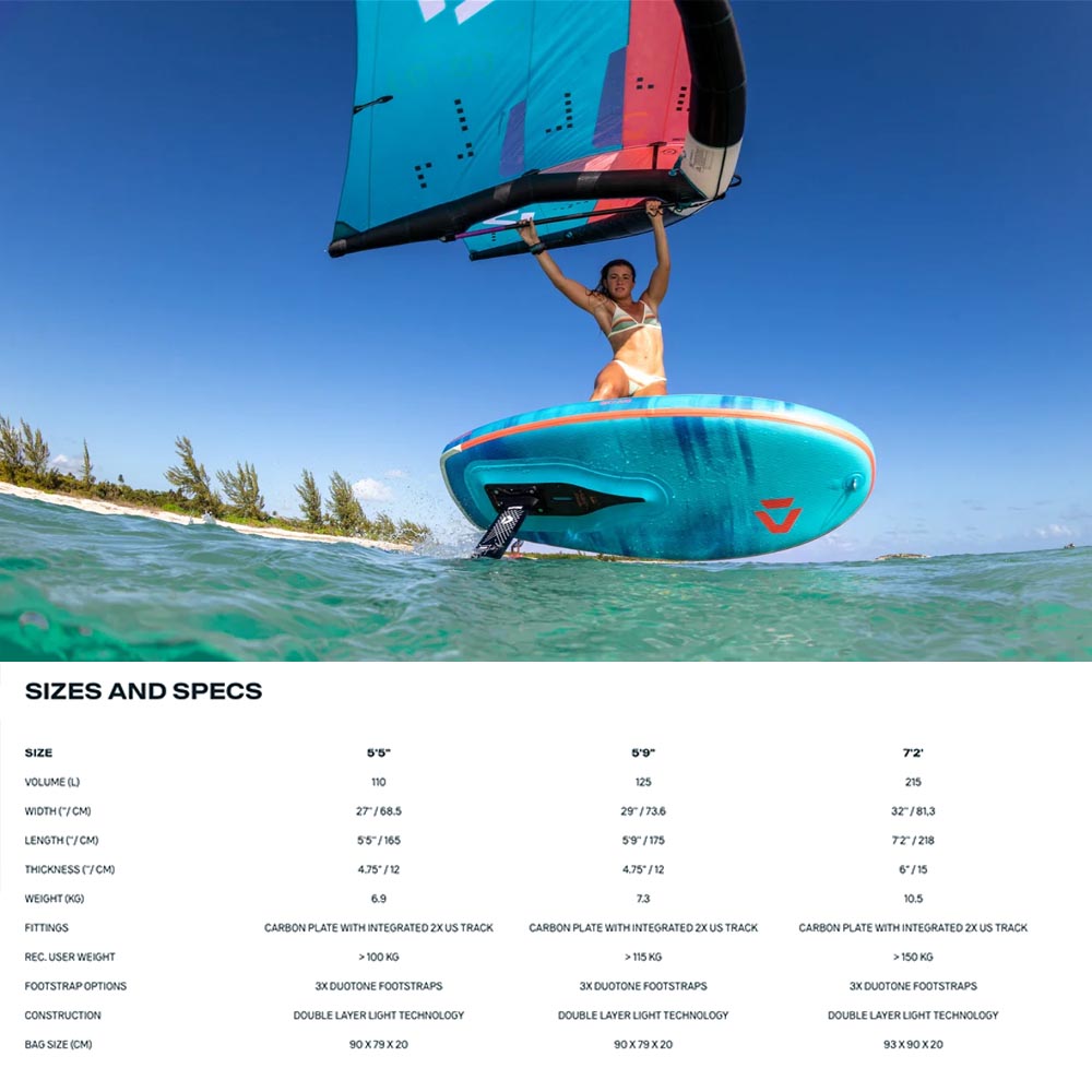 All three models feature our rigid fusion technology with solid carbon plate, including foil tracks and carrying handle which stiffens and adds stability to the stance area. A silicon rail edge offers great release onto the foil, while footstrap options, a premium bag and Multipump for Board and Wing round off this fun, durable and versatile package.