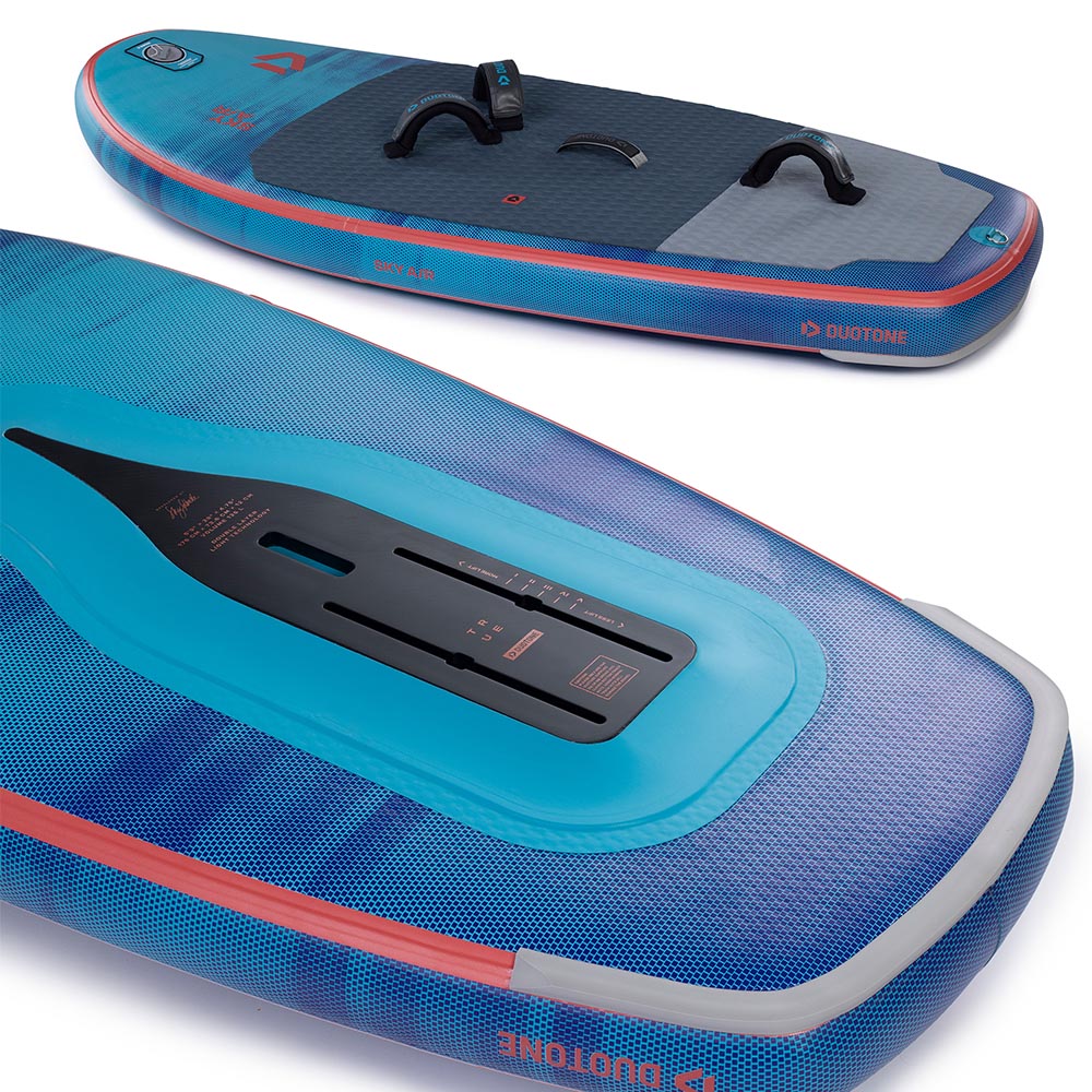 With three models in 5’5” (105l), 5’9” (125l) and 7’2” (215l), we’ve focused the Sky Air range on the most popular sizes, of which the smaller two match style and size of the respective Sky Free. The large 7’2” comes with side and tail fins for upwind ability when non foiling to learn the basics before your first take-off.