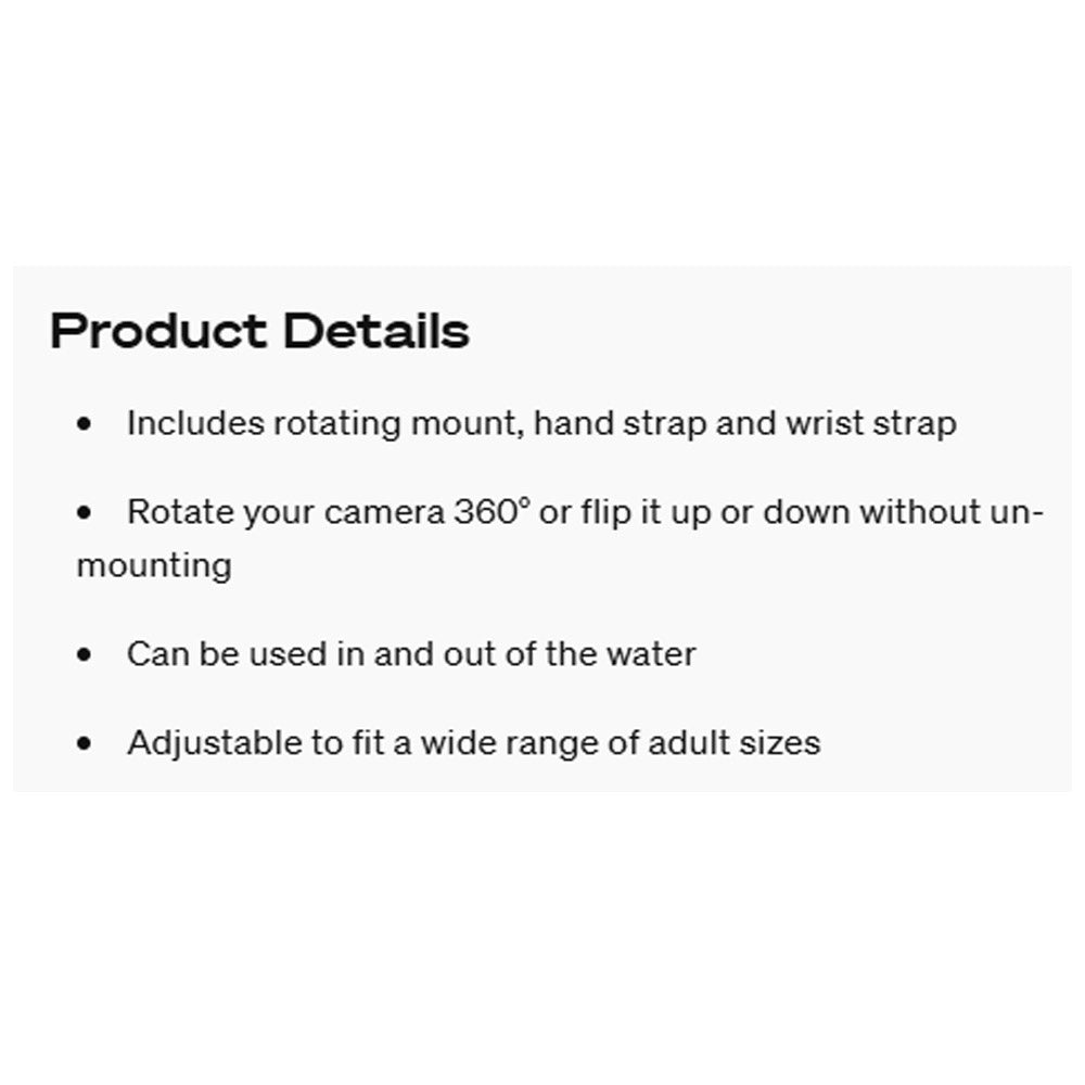 Strap your GoPro to your hand or wrist to capture ultra immersive point-of-view footage, one-of-a-kind selfies and more. Features 360° rotation and tilt that lets you adjust your capture angle on the fly.