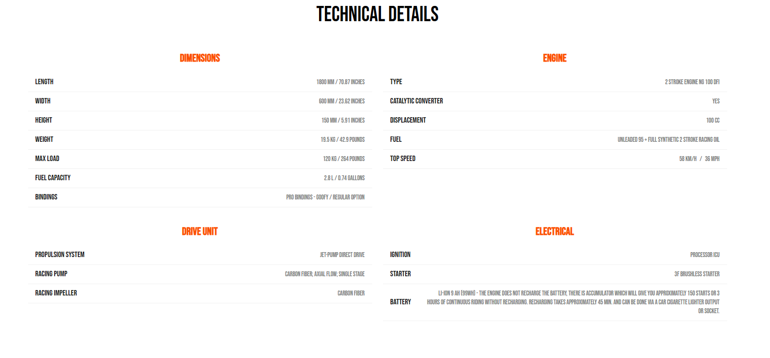 POWER UNIT... 2 STROKE 100 CC ENGINE DFi, TITANIUM EXHAUST. The most reliable and powerful engine the motorized surfing industry has ever seen combined with the most powerful Titanium exhaust.