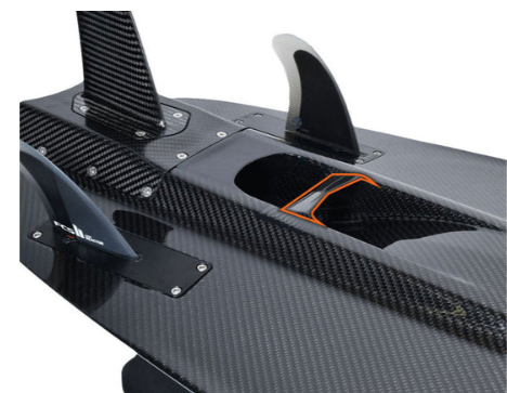 JET TUNNEL WINGLETS... The integrated winglet stimulates hydrodynamics flow to increase the performance of the motorized surfboard by sucking more water into the JETPUMP.