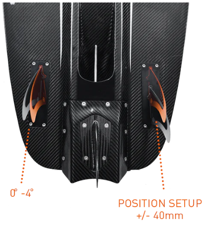 FIN ADJUSTER... This innovative feature allows for precise adjustment of fins' convergence and position, offering an unprecedented level of customization. Tailor the riding characteristics of each board to your personal style and preferences, enhancing your surfing experience.
